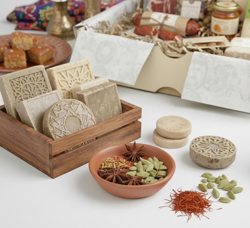 La selección combina comida española —productos de despensa, dulces, conservas y especialidades locales— con productos árabes pensados para el día a día y el regalo: tés e infusiones, especias y mezclas aromáticas, jabones artesanales, cuidado corporal, maquillaje y pequeños esenciales con historia. Todo está curado con una misma intención: calidad accesible, origen claro y una experiencia sensorial que te transporte sin complicarte la vida.