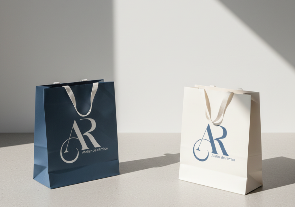 Atelier de Rítmica’s identity is built on balance: editorial elegance and sporty energy. The AR monogram acts as the main mark—sophisticated and recognizable—while graphic elements draw inspiration from the fluidity of the ribbon and from lines that suggest trajectory and control, used with restraint to keep a modern feel. The palette leans on deep blues and soft neutrals, conveying calm, precision, and professionalism. Across digital and print applications, the system prioritizes whitespace, typographic hierarchy, and subtle finishes—making every touchpoint, from a label to a landing page, feel like a considered gesture: simple, technical, and beautiful—like rhythmic gymnastics when it’s done well.